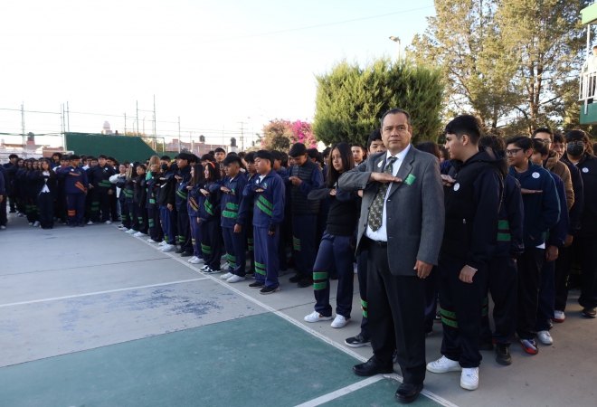 En el Plantel I – Lomas del Mezquital se llevaron a cabo los Honores a la Bandera, ceremonia que fue presidida por nuestro Director General, Mtro. Edgar Alejandro Anaya Escobedo, acompañado por la Directora del plantel y las y los Directores de Área de la Dirección General del CECyTE SLP.