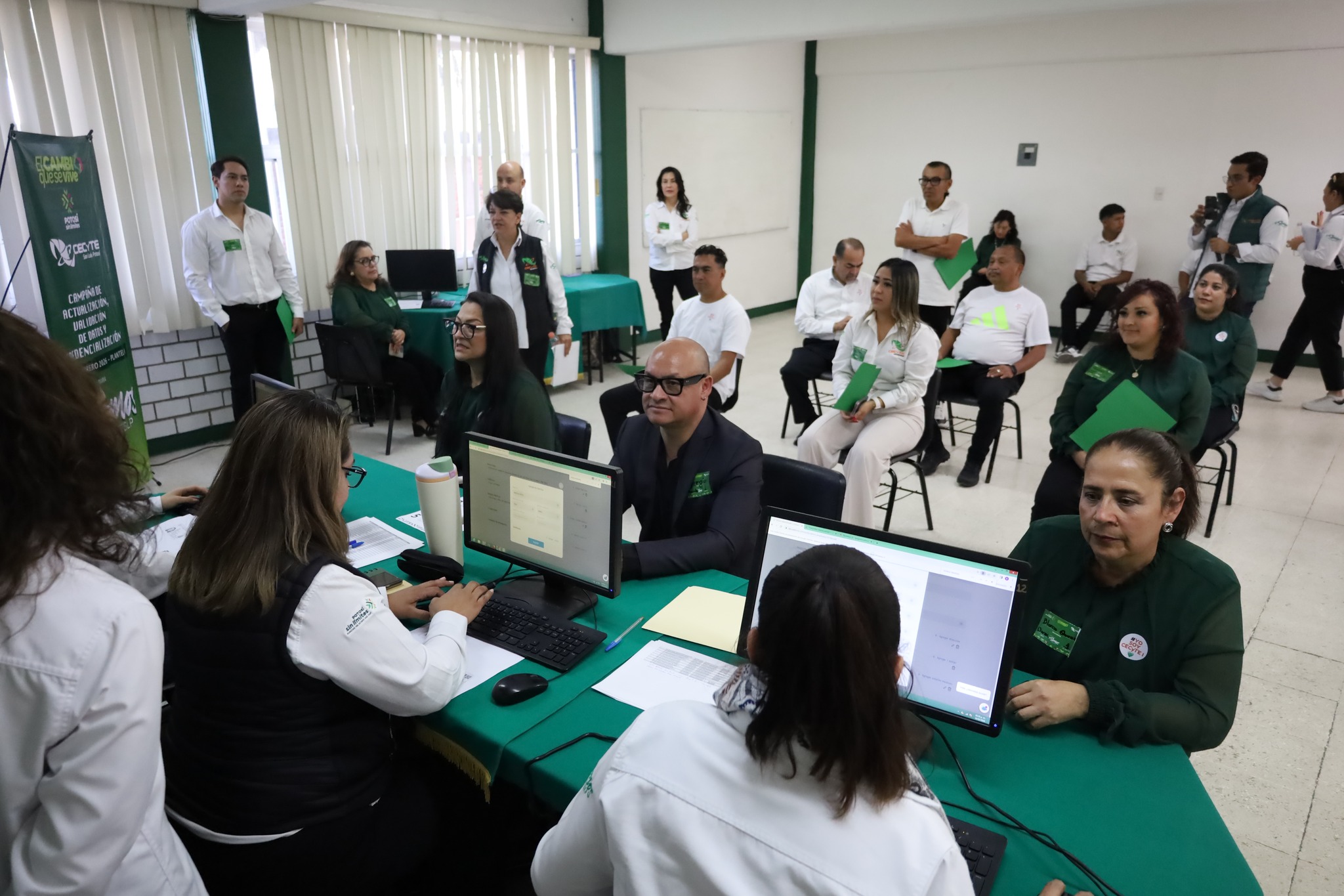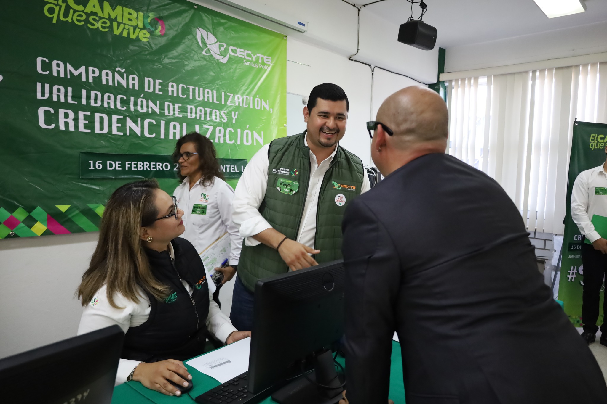 Como parte de la Jornada Multidisciplinaria #SomosCECyTESLP, nuestro Director General, Mtro. Edgar Alejandro Anaya Escobedo, realizó un recorrido por el módulo de actualización, validación de datos y credencialización correspondiente al turno vespertino del CECyTE San Luis Potosí.